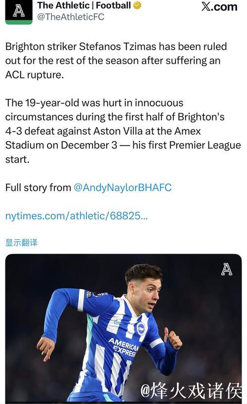 布莱顿与阿森纳双线告急的背后 隐藏着怎样的英超伤病困局 当布莱顿确认新援前锋齐马斯遭遇十字韧带撕裂时 英超的冬日寒意似乎突然降临在南海岸的更衣室里 这名本被寄望为球队进攻端新变量的球员 还没来得